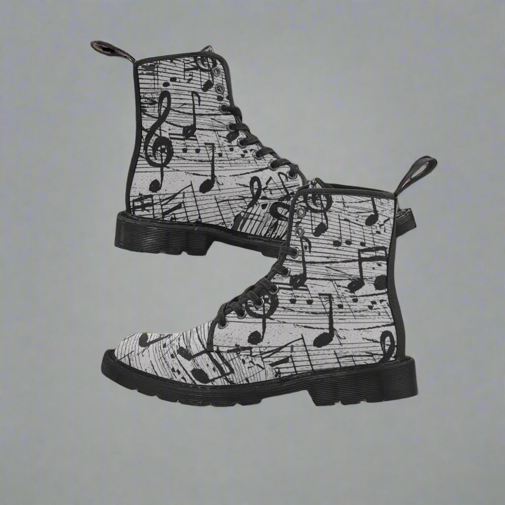 Show off your love for music with these exclusive Women's Lace Up Canvas Boots! With a slip-resistant and abrasion-proof black gum sole, ribbed midsole, and breathable mesh foam lining, these boots are perfect for any adventure. Easy to slip on with a rear pull-loop. Available in US sizes 6.5-12. Perfect for daily wear, sports, hiking, and more.