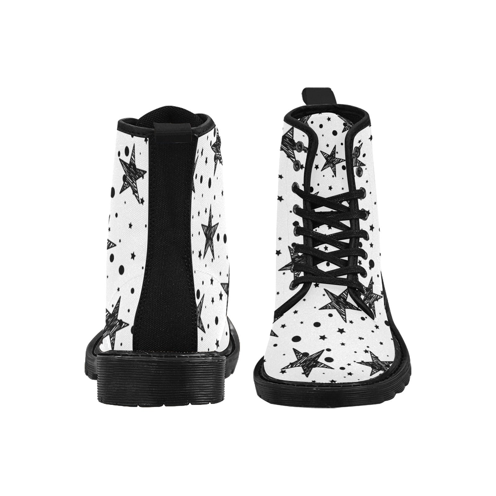 Stargaze - Women's Lace Up White Boots With Black Stars